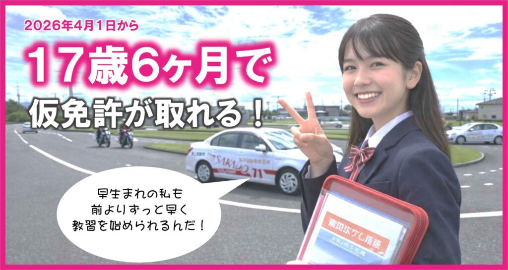 2026年4月1日から、普通車の仮免許取得可能年齢が、従来の18歳から17歳6か月に引き下げられました。