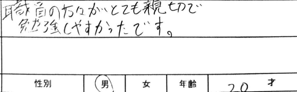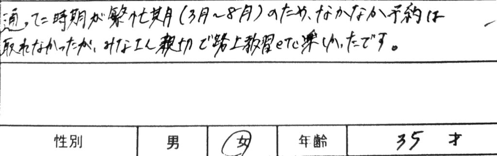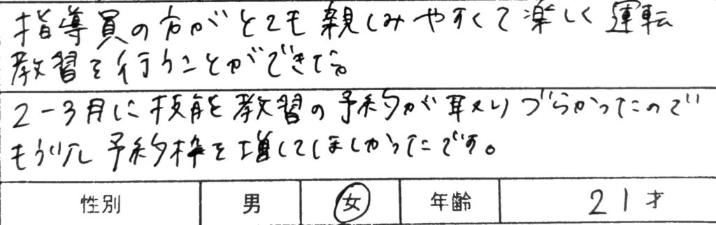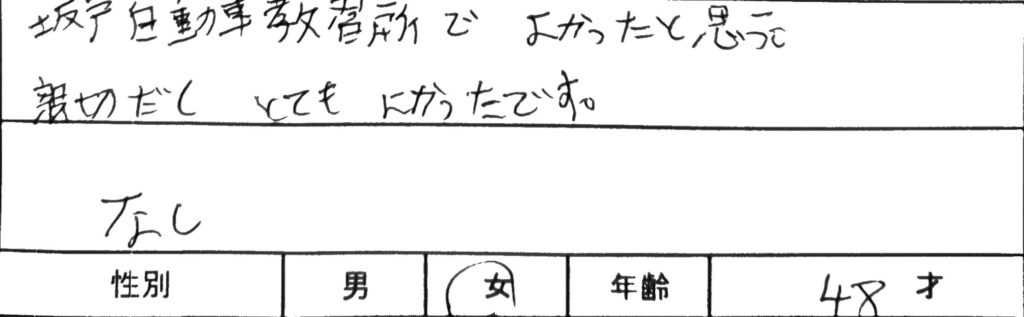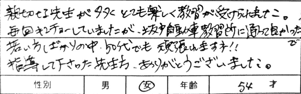 坂戸自動車教習所では卒業生全員の方にアンケートを取らせて頂いております。