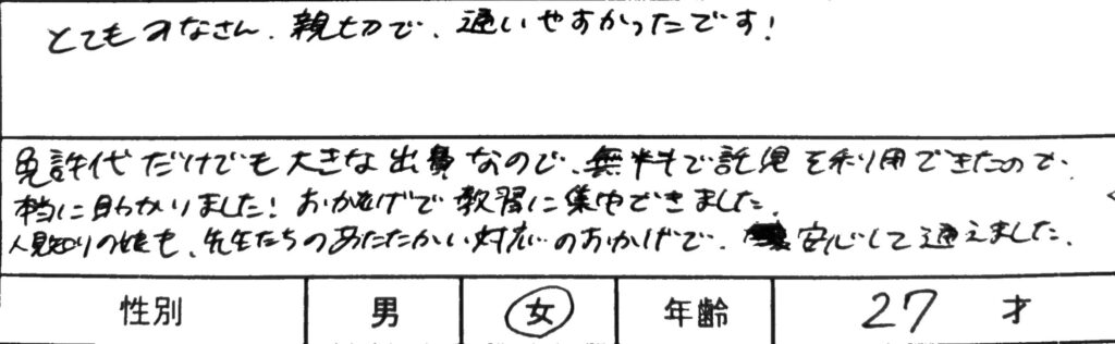 教習生ネットの評判(Google)を見て心配だったけど実際来てみたら良かった!