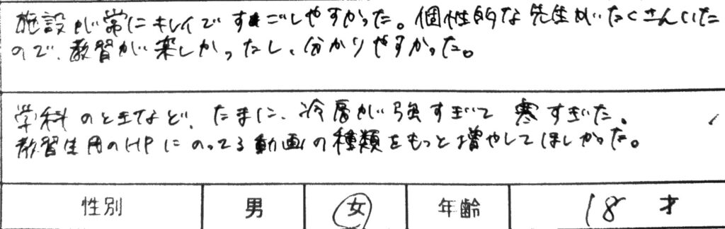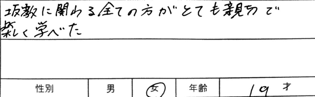 というご意見が多い(苦笑)ので、実際に坂教を卒業された方のアンケート内容をご覧ください!
